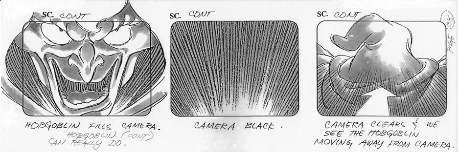 Super Arachnid, shown above, is throwing his exploding pacballs. Really, it has nothing to do with the following Spider-man (1995 animated TV series) storyboards, excellent examples of actions in cinematic comics.